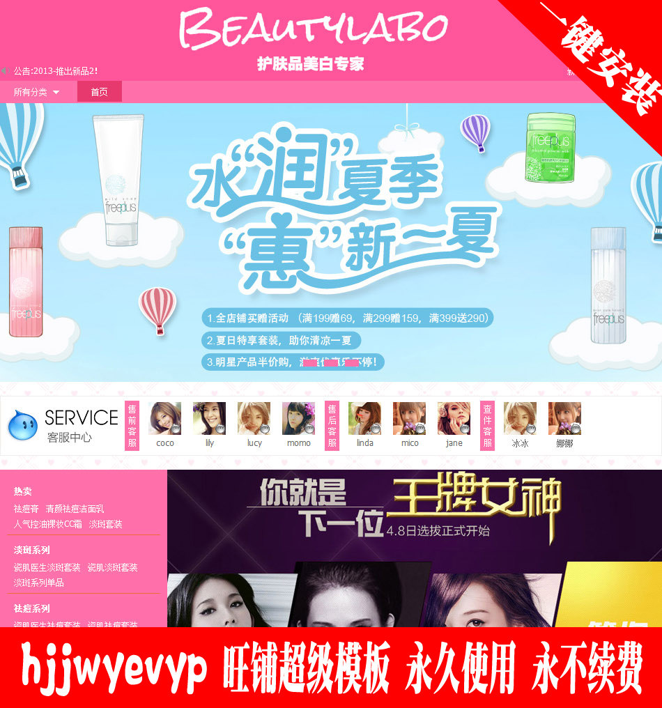 設計淘寶網店鋪裝修模板 智能版美容化妝品保養(yǎng)面膜 懶人終身使用