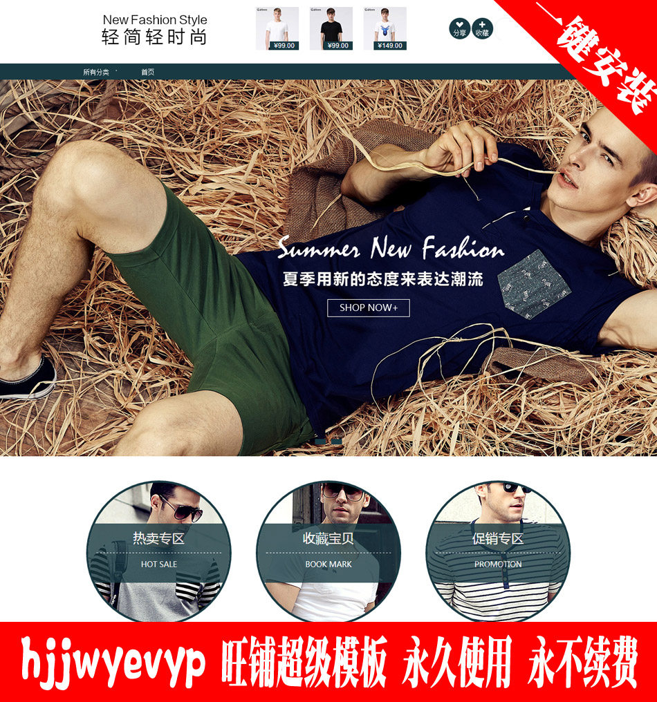 設計淘寶網店鋪裝修模板 智能版時尚男裝鞋包短袖短褲子 代裝修