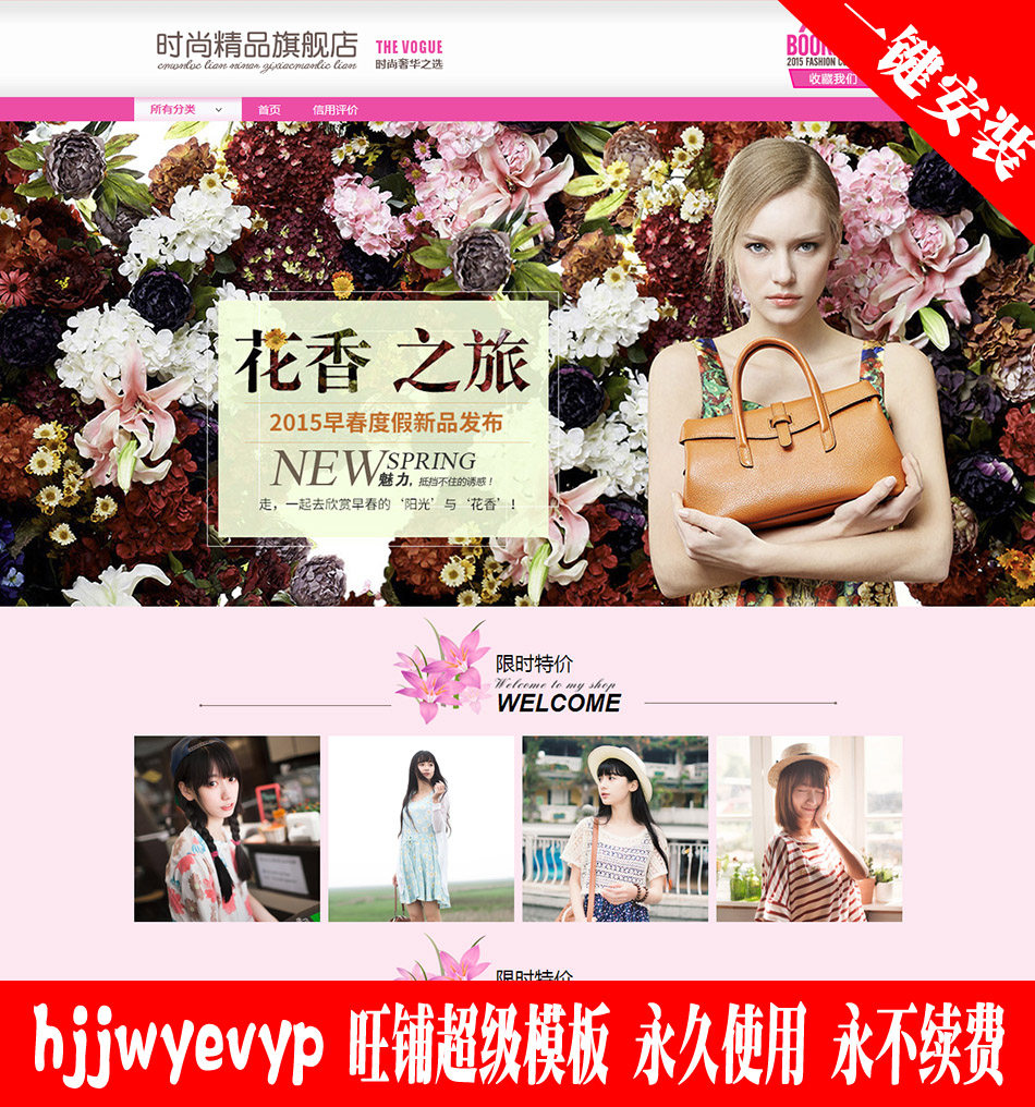 設計淘寶網店鋪裝修模板 智能版文藝女裝服裝夏裝女鞋子 終身使用