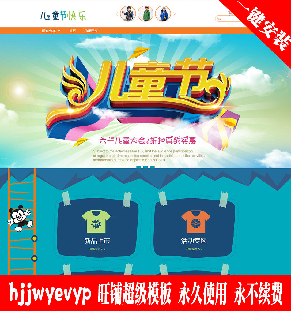 淘寶網頁版店鋪裝修模板首頁面設計專業(yè)智能版六一61兒童節(jié)童裝鞋