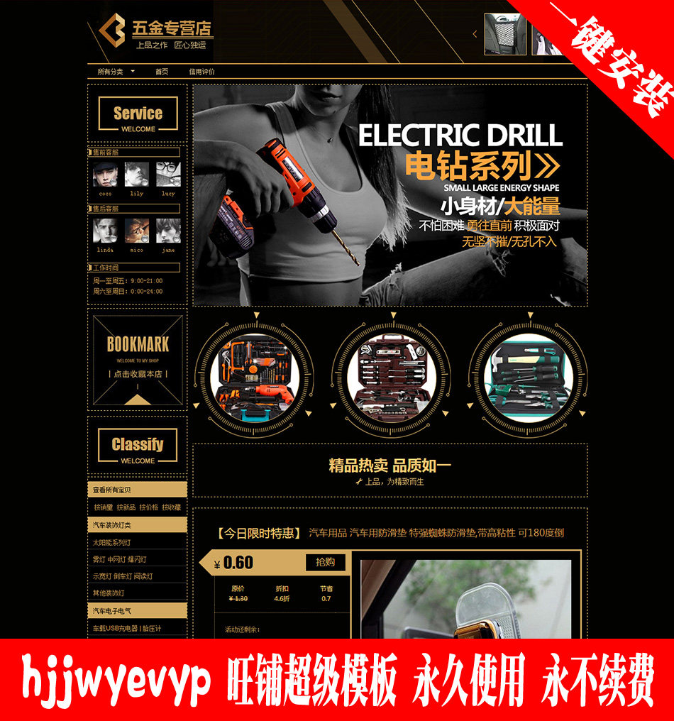 設計淘寶網店鋪裝修模板 基礎版五金用品工具箱電鉆配件 終身使用