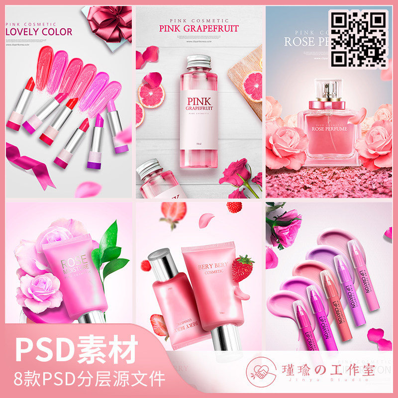 Y640粉色高端香水化妝護膚品彩妝淘寶店鋪裝修海報模板PS設計素材
