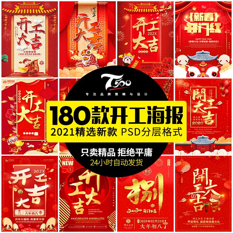 2021牛年開工大吉海報模板PSD公司店鋪商場開門紅展板設計素材庫