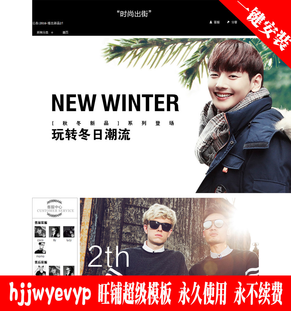 設計淘寶網店鋪裝修模板 基礎版秋冬季厚款男裝羽絨服裝 終身使用
