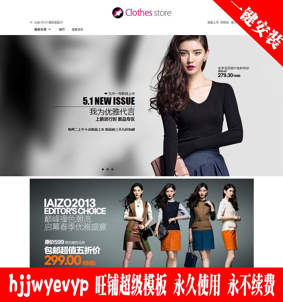 淘寶網(wǎng)頁(yè)版店鋪裝修模板首頁(yè)面設(shè)計(jì)專業(yè)智能版歐美風(fēng)成熟女裝服飾