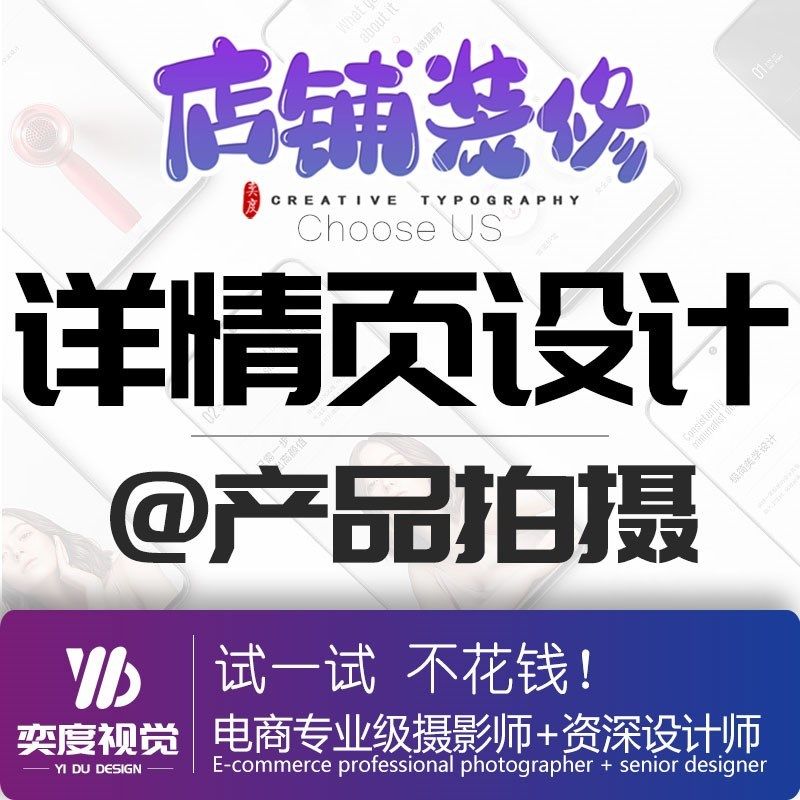 詳情頁(yè)設(shè)計(jì)制作淘寶店鋪裝修主圖視頻產(chǎn)品拍攝影首頁(yè)海報(bào)美工包月
