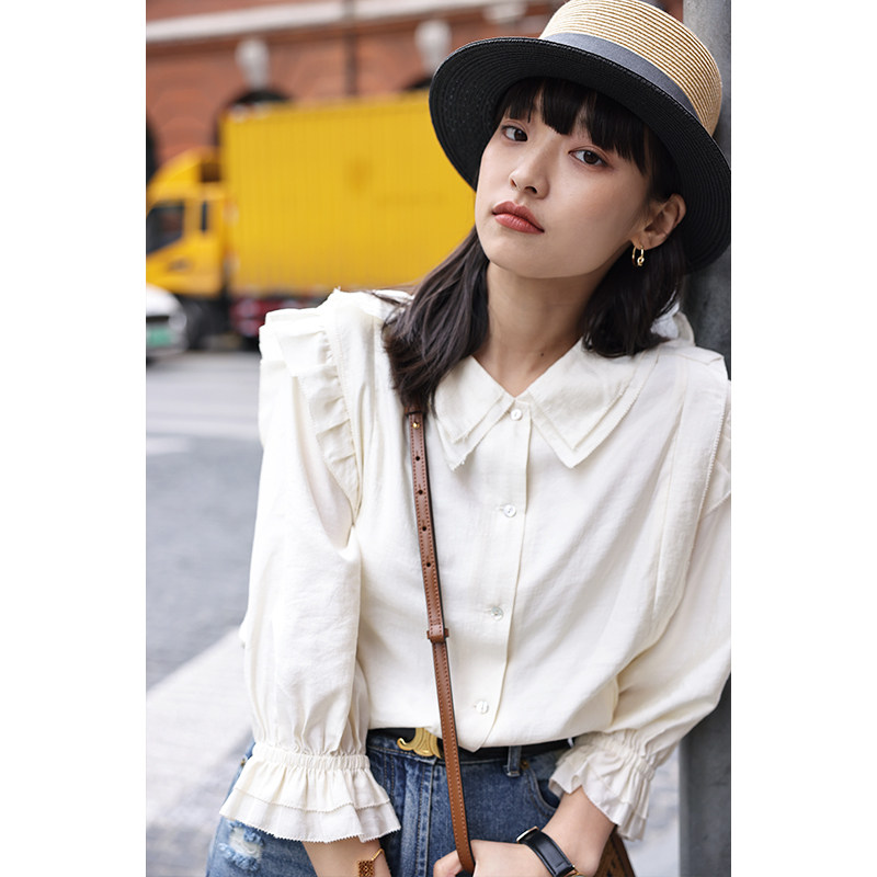 敘舊oldtimes【蟬鳴】荷葉袖雙層領(lǐng)設(shè)計 襯衫清爽舒適顯膚色C1768