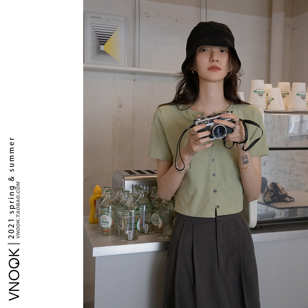 VNOOK針織開衫薄款女夏季新款韓版設計感小香風高腰短袖修身t恤潮