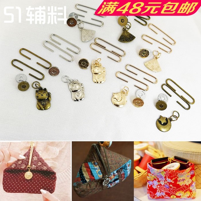 DIY手工布藝口金包包配件滑竿磁扣飯團(tuán)口金吊墜鐵桿送圖紙51輔料