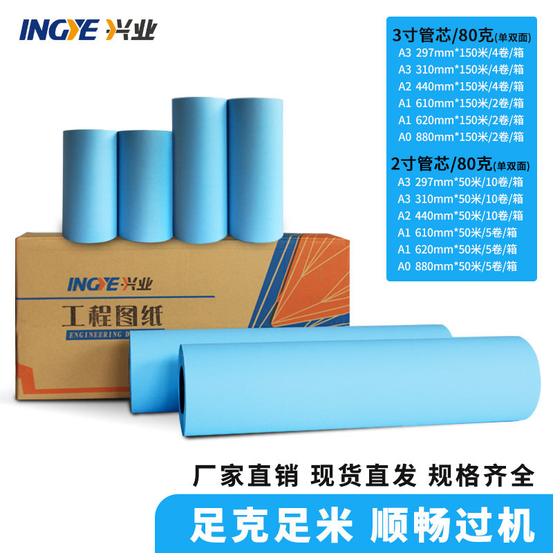 興業(yè)數(shù)碼工程雙面藍(lán)圖紙卷筒80克A3A2A1A0雙面專業(yè)2寸3寸芯150米