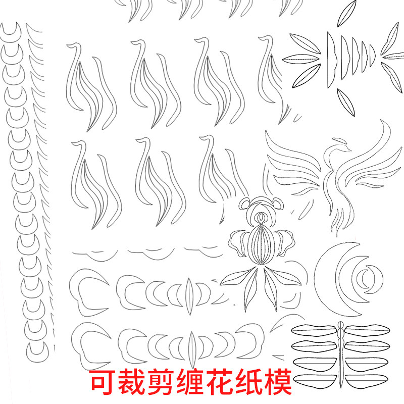 纏花紙模需截剪切片圖樣圖紙模板白卡紙diy古風(fēng)發(fā)簪漢服頭飾材料