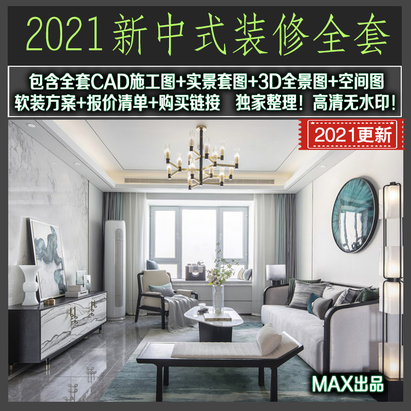 新中式風(fēng)格裝修設(shè)計效果圖紙樣板間案例客廳餐廳臥室吊頂房子家裝