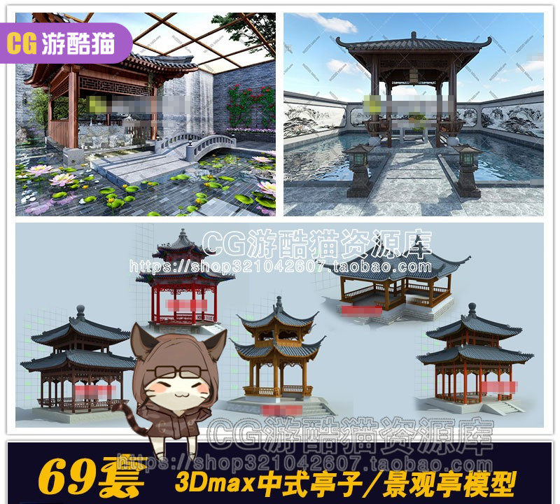 38套中式古建亭子3d模型3dmax模型素材園林景觀亭庭院3d效果素材