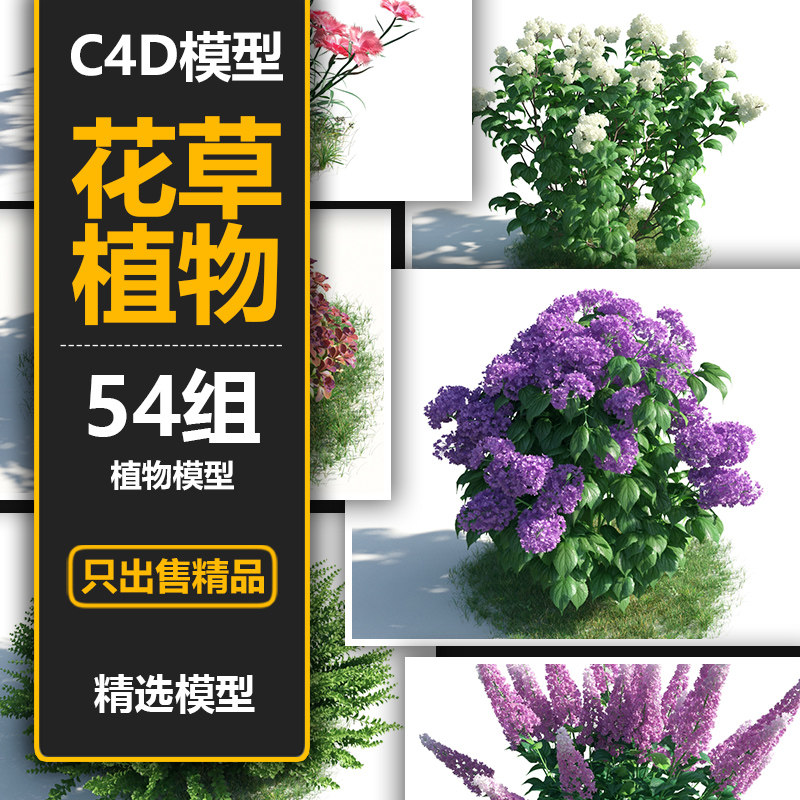 ISH008樹木花朵植物盆栽景觀植物花卉C4D模型3D三維素材含材質(zhì)庫