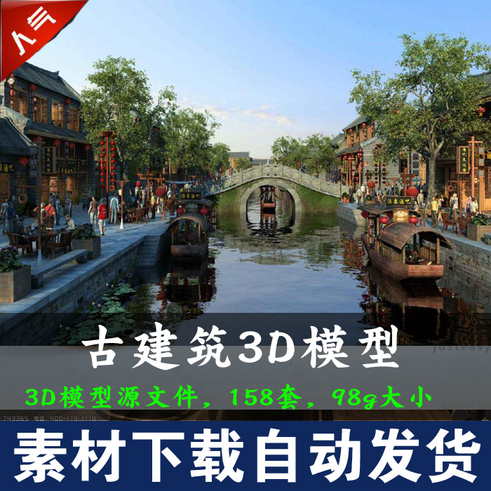 M177-中式古建筑外立面3dmax模型 公園河流湖泊景觀鳥瞰3d模型