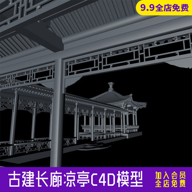 中國風古建景觀模型長廊涼亭C4D模型創(chuàng)意場景3D模型素材CY675