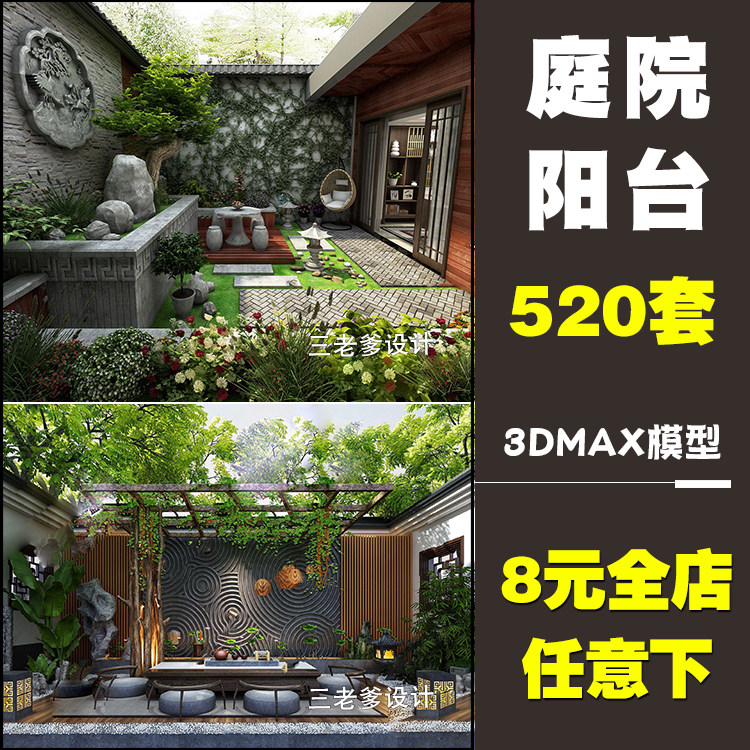 庭院室外小院3d模型園林景觀中式院子植物露臺民宿花園3DMAX素材