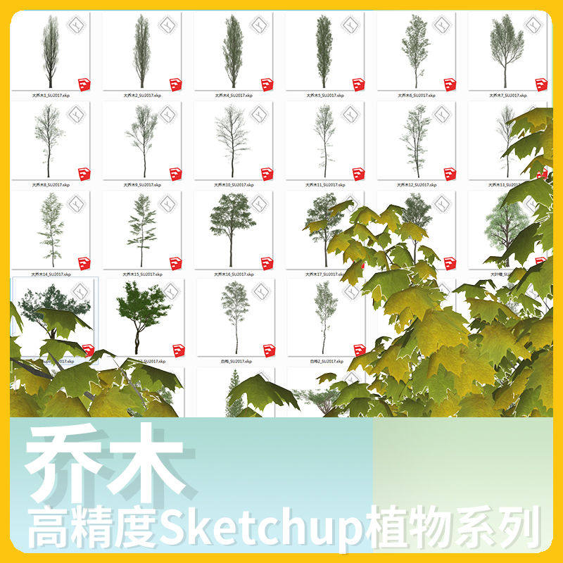 2D3D園林景觀手繪植物組件SU模型庫透明樹植物搭配竹類冬景樹枯樹