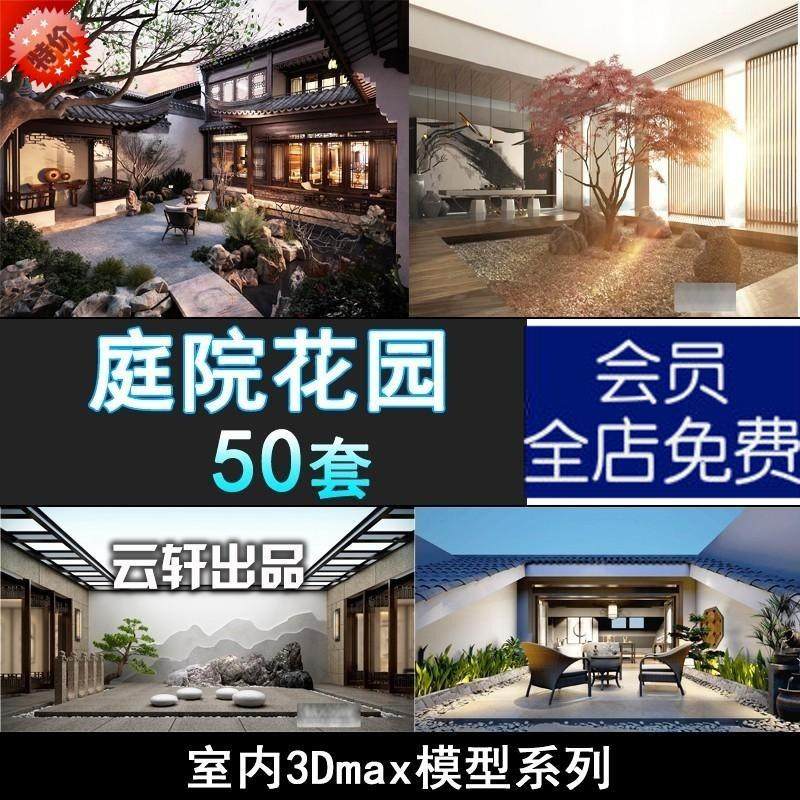 J05新中式陽臺庭院花園3d 別墅庭院景觀設(shè)計模型庭院3dmax模型