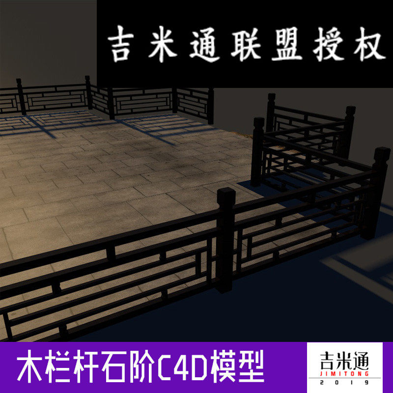 古建模型木欄桿石階C4D模型中國風(fēng)景觀創(chuàng)意場景3D模型素材CY717
