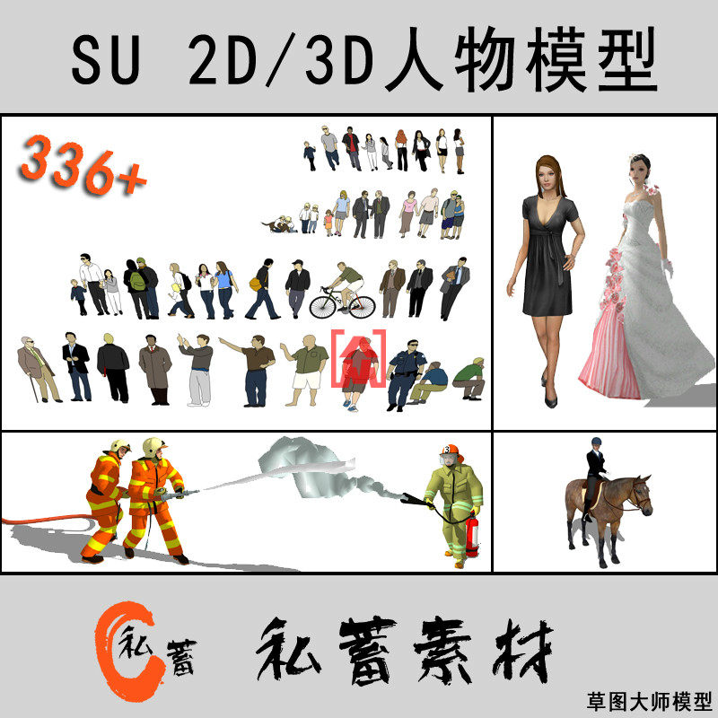 2D 3D人物男性女性兒童景觀剪影sketchup草圖大師SU模型素材庫