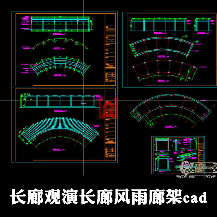 園林景觀設(shè)計 休息長廊 觀演長廊 風(fēng)雨廊連廊架cad施工圖節(jié)點詳圖