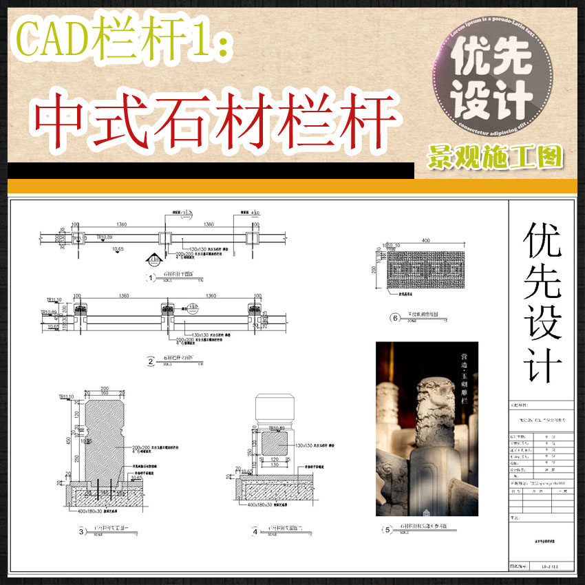 園林景觀(guān)施工圖石材石頭欄桿中式現(xiàn)代歐式施工圖節(jié)點(diǎn)CAD圖紙欄桿1