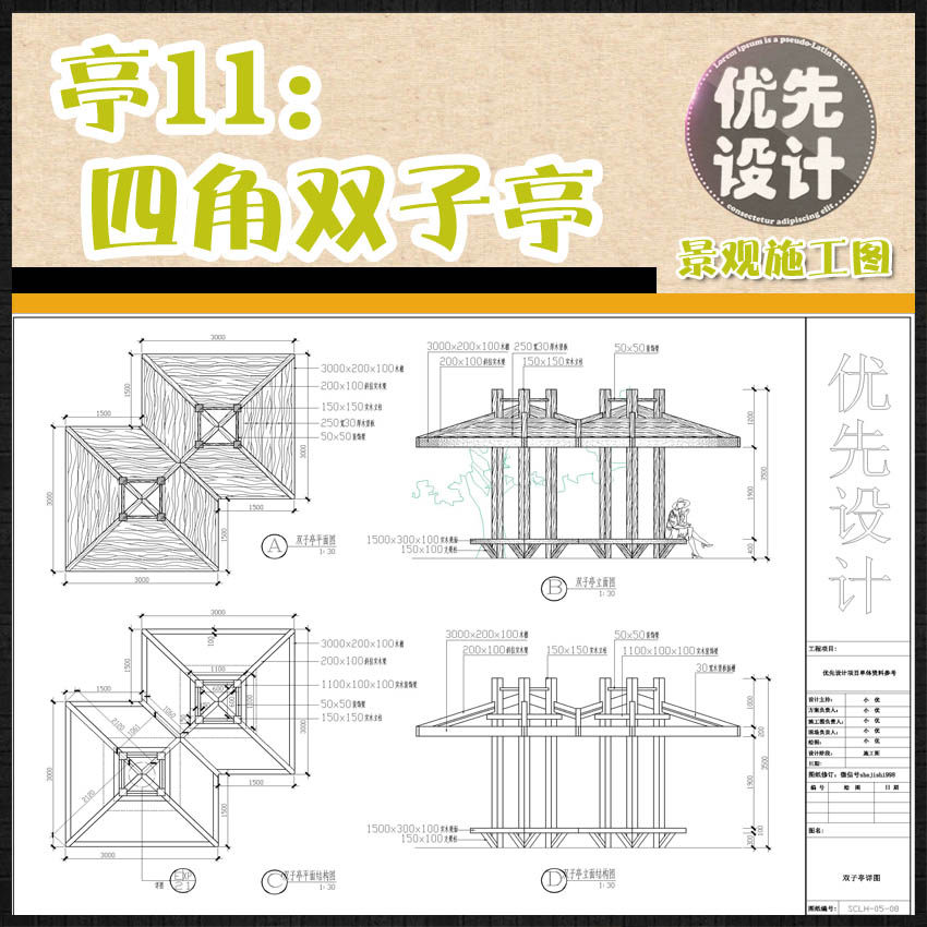 景觀(guān)施工圖 四角雙子亭 木亭休憩亭園建設(shè)計(jì)園林景觀(guān)節(jié)點(diǎn)圖亭11