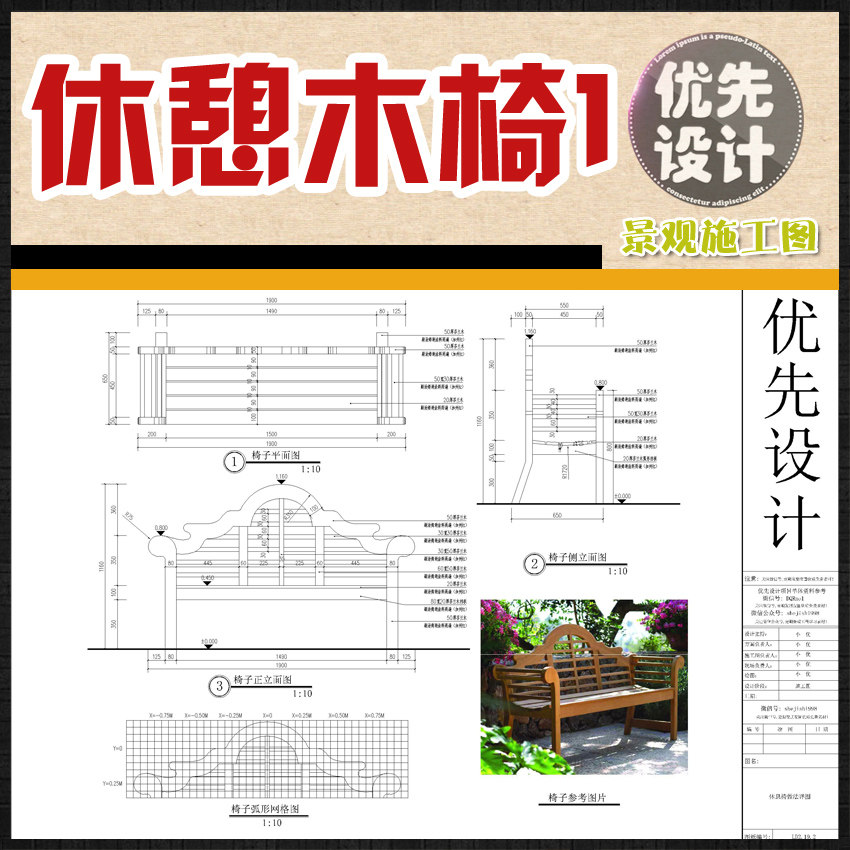 園林景觀(guān)施工圖 休憩木椅成品木椅CAD施工圖 節(jié)點(diǎn)CAD圖紙 小品11
