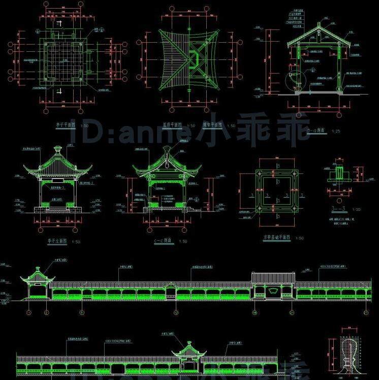 古典中式蘇州園林古建筑景觀(guān)小品亭廊涼亭長(zhǎng)廊水榭CAD施工圖 Z423