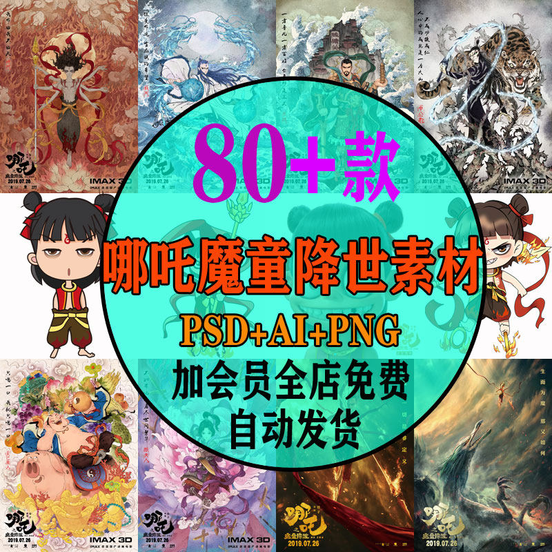 哪吒魔童降世高清Q版熱轉(zhuǎn)印花PNG圖片T恤圖案AI矢量圖PSD模板素材