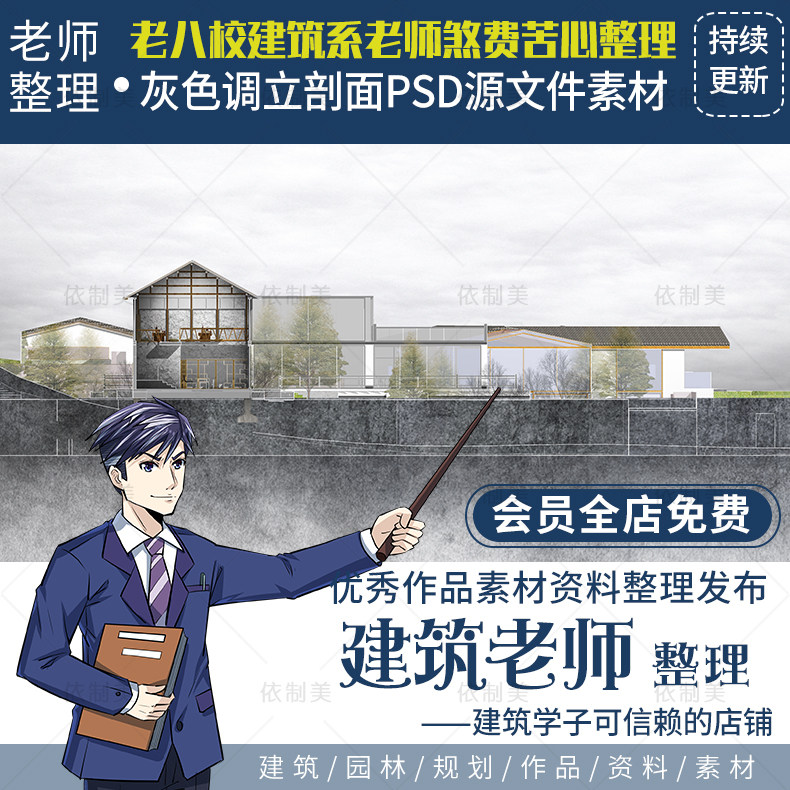 灰色調(diào)立剖面PSD分層源文件歐美競(jìng)賽建筑規(guī)劃景觀園林環(huán)藝PS素材