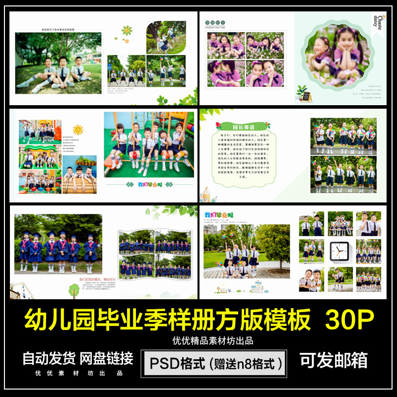 幼兒園畢業(yè)季方版樣冊(cè)PSD模板PS沛設(shè)計(jì)2021紀(jì)念冊(cè)照片素材QC028