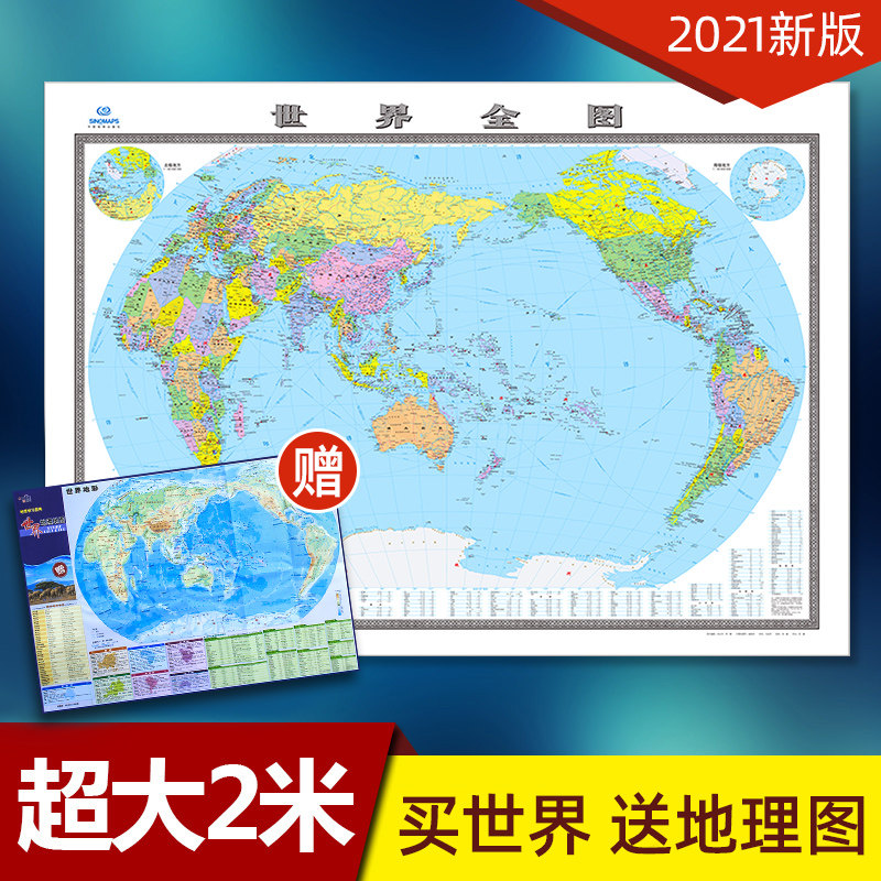 正版現(xiàn)貨2021年新版世界地圖全圖2米x1.5米超大墻貼貼圖客廳辦公室地圖辦公室地圖詳細(xì)交通航空航線交通運(yùn)輸物流另售掛圖