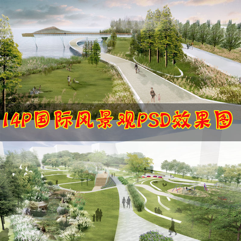 國際競賽風格園林景觀設(shè)計公園濱水濕地ps效果圖psd模板參考素材