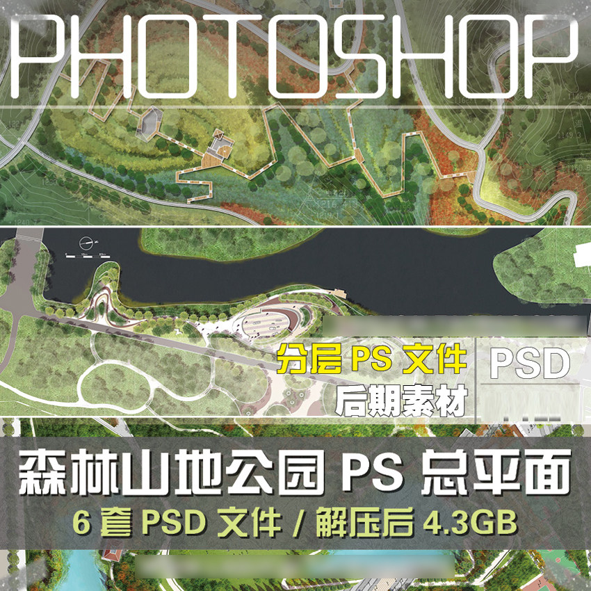 森林公園山地景觀園林ps設(shè)計(jì)總平面圖規(guī)劃素材效果圖psd城市綠地