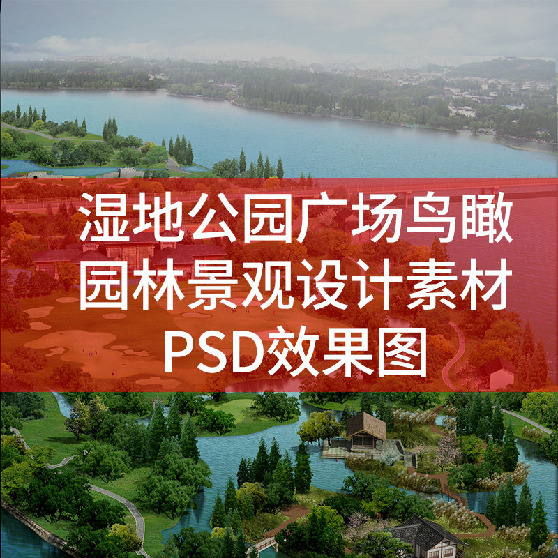 濕地公園廣場(chǎng)鳥瞰園林景觀設(shè)計(jì)PSD效果圖平面設(shè)計(jì)素材ps圖庫(kù)