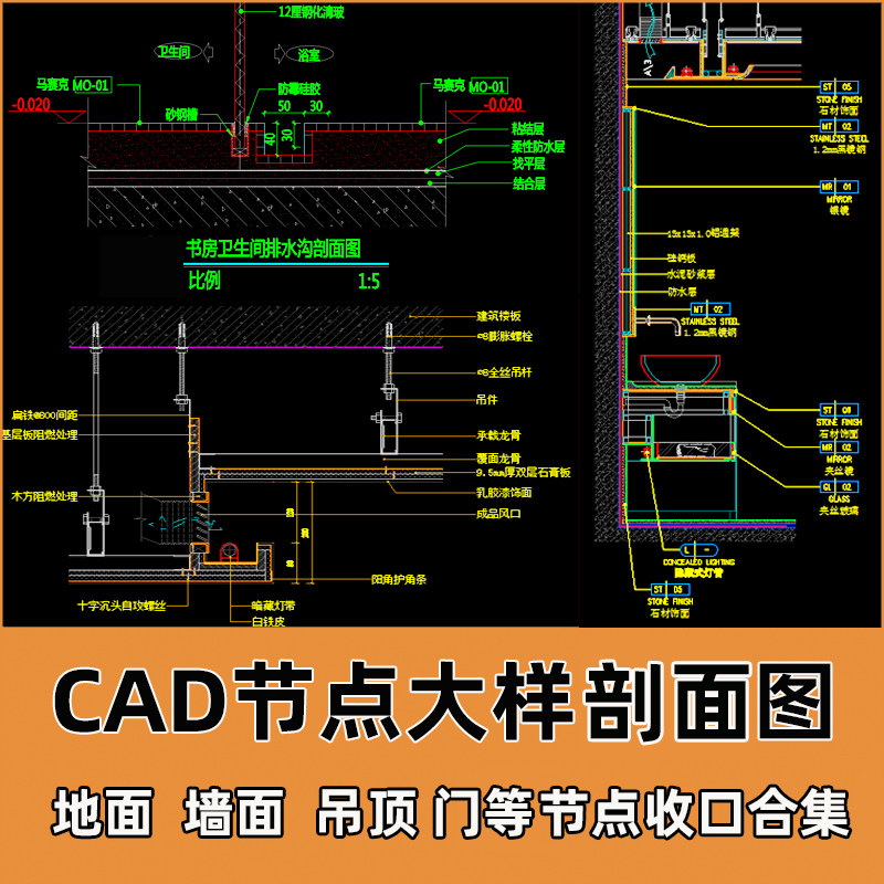 CAD深化節(jié)點(diǎn)大樣圖室內(nèi)設(shè)計(jì)家裝工裝立面剖面施工圖紙CAD詳圖素材