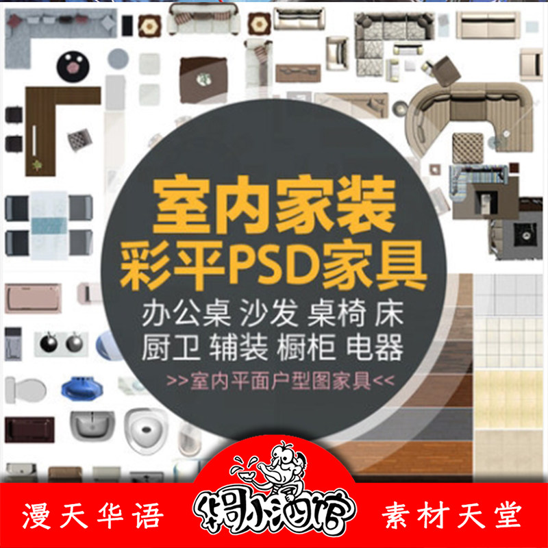 室內(nèi)設(shè)計家裝工裝PS彩色平面圖PSD家具戶型圖設(shè)計素材華哥小酒館