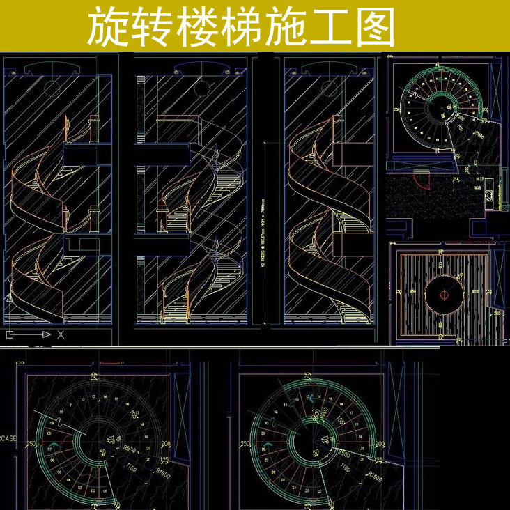 商業(yè)工裝家裝裝修設(shè)計旋轉(zhuǎn)樓梯CAD立面施工圖詳圖