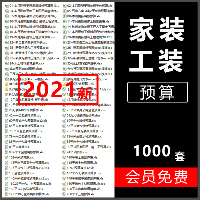 室內(nèi)設(shè)計 家裝 工裝公司裝修預(yù)算報價模板100套Excel/WORD表格