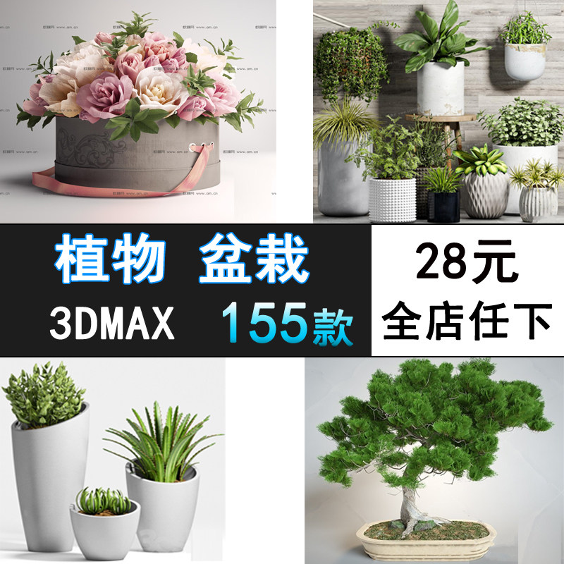 M92-植物盆栽花卉盆景3d模型 室內(nèi)家裝綠植插花盆景花盆3dmax模型