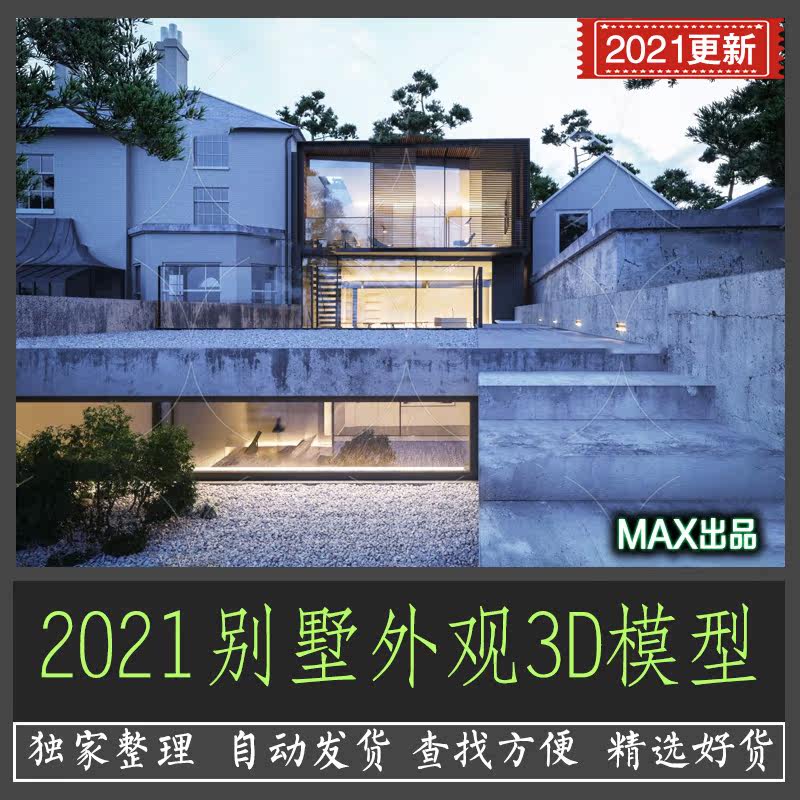 別墅外觀3d模型庭院園林室外建筑景觀自建房源文件3DMAX民宿素材