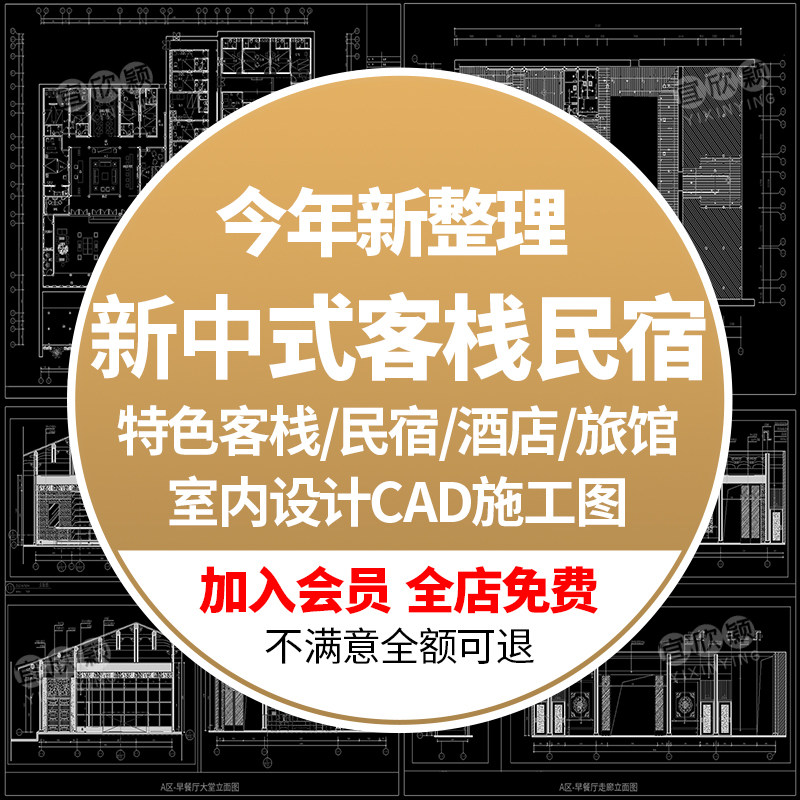 全套新中式特色客棧民宿酒店旅館CAD施工圖紙室內(nèi)設(shè)計(jì)家裝效果圖