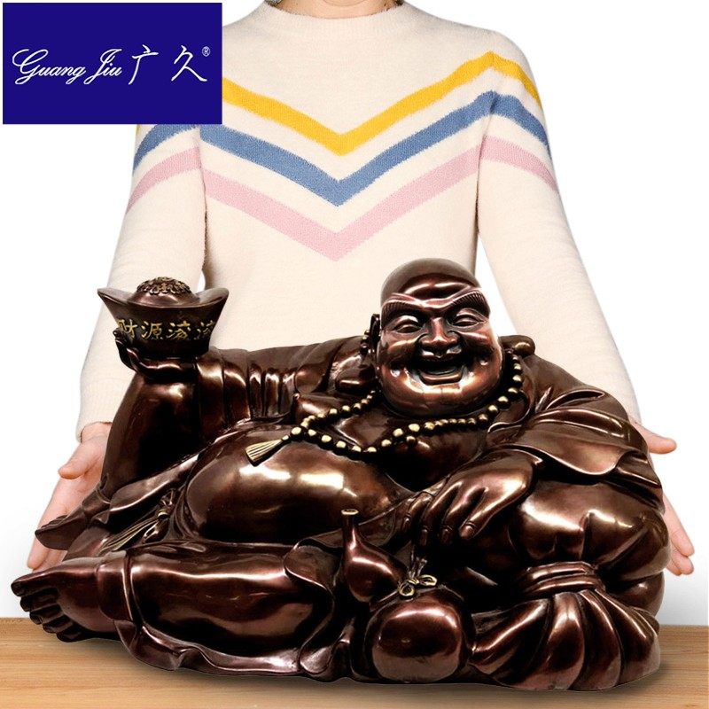 廣久古銅色銅佛像笑口常開大肚布袋托元寶彌勒笑佛酒店會所HW0413