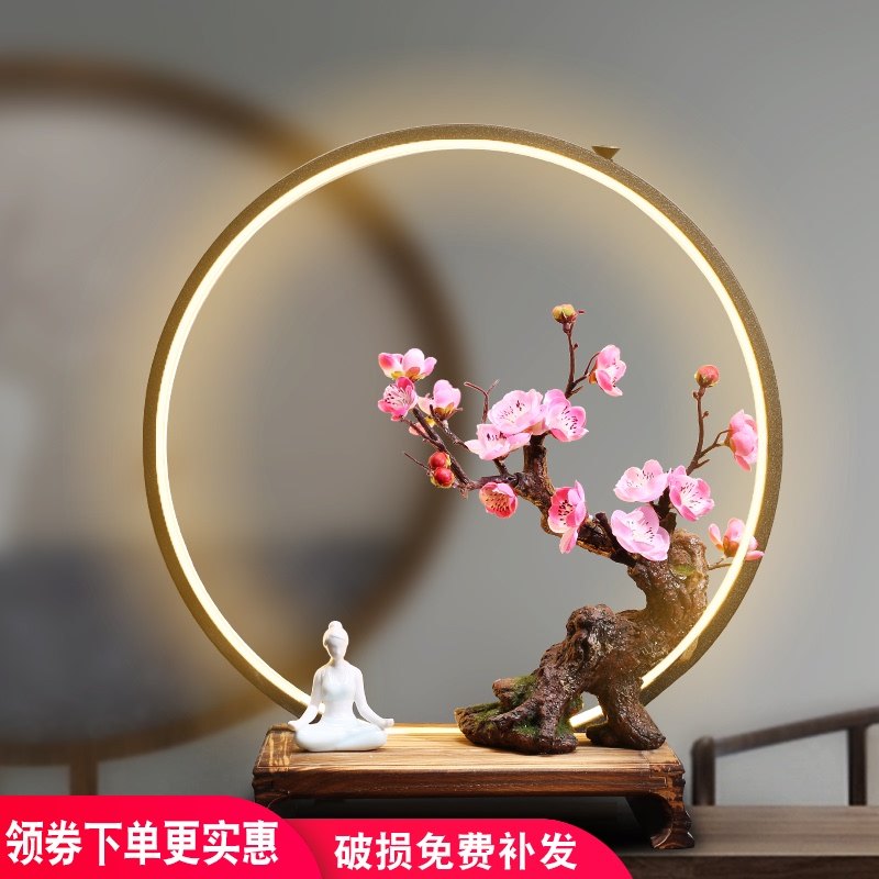 新中式家居擺件LED可發(fā)光暖光氛圍夜燈客廳辦公室會(huì)所軟裝工藝品
