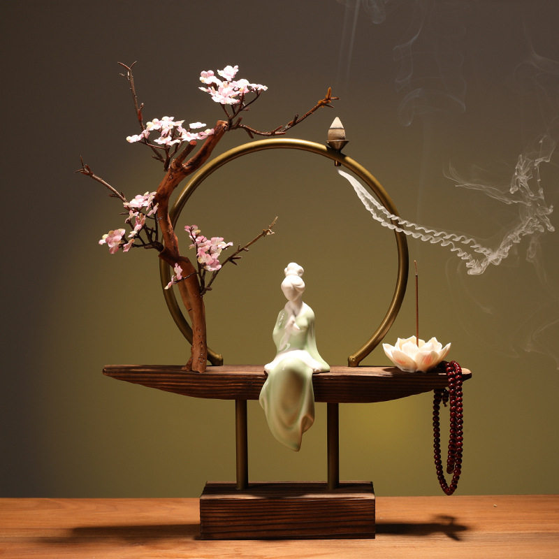 倒流香爐沉香熏香客廳會(huì)所家居軟裝飾品玄關(guān)木制創(chuàng)意擺件中式新款