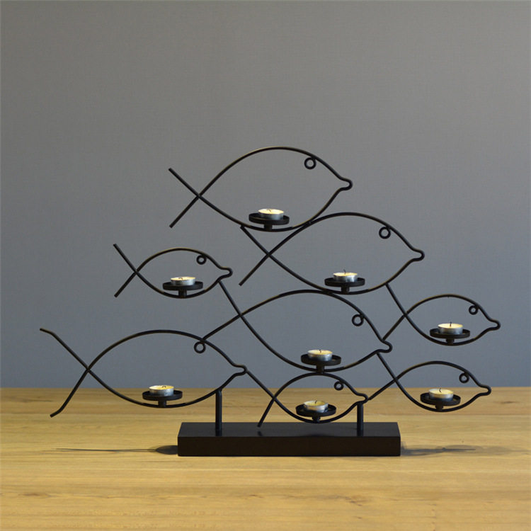 黑色鐵藝抽象魚形燭臺(tái)擺件 酒店會(huì)所玄關(guān)黑色大型燭臺(tái)工藝品擺件
