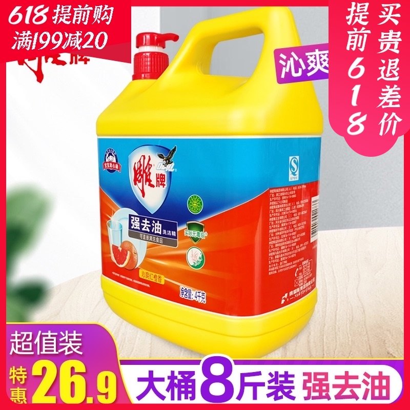 雕牌洗潔精4kg商用餐飲廚房8斤家用大桶去油洗碗家庭實惠裝洗滌劑