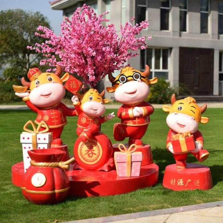 牛年中心大廳耐曬布景道具金店布置新年春節(jié)環(huán)境門口售樓裝飾主題